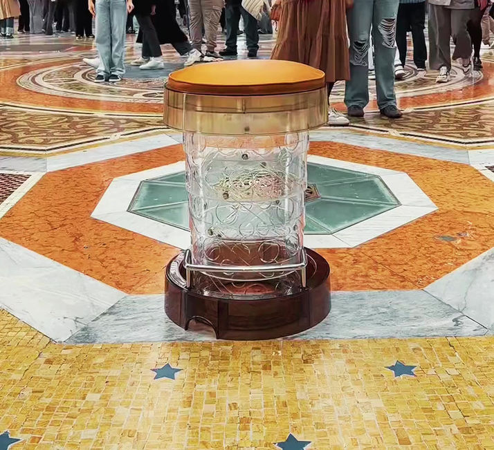 The structural circles, distinctive elements of KUTYNA, are finished and polished by hand one by one to ensure uniform surfaces and visual continuity.
